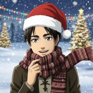 Festive Eren PFPs add a holiday twist. Fun and colorful designs show Eren in a cheerful style.