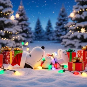 Festive Snoopy PFPs with snow, lights, and holiday themes. They bring a cheerful and cozy feeling, making your profile perfect for the winter season.