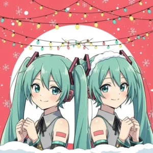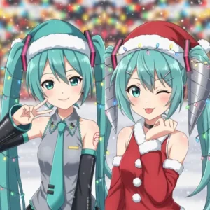Cute holiday matching icons of Miku and Teto. Ideal for spreading festive anime vibes on your profile.